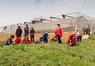 草莓大棚里的草莓压弯了枝头,绿油油的草莓地里,点缀着红绿相间的草莓果,像是一颗颗玫瑰花蕊。大家在草莓种植园老板的指导下,学会了如何辨别草莓的成熟、采摘和保存等方面的知识,大家一边采草莓一边互相交流,意兴盎然。大家拎着自己的劳动成果在田间地头拍照留影,随着镜头一闪,留住了这紧张工作之余的轻松时刻,也感受到了乡村初春的气息。