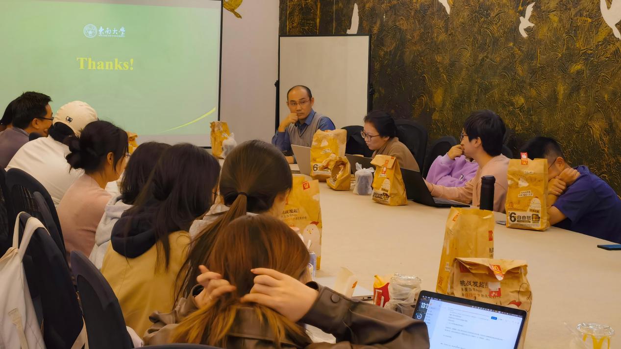 2025年10月29日,东南大学经济管理学院第十期学术午餐会在经管楼B203成功举行。本次活动由经济管理学院党委副书记尹威主持,特邀邵秀燕老师担任主讲嘉宾,吸引了学院20余位师生齐聚一堂,在轻松愉悦的午餐氛围中开展学术交流,促进思想碰撞与跨学科合作。