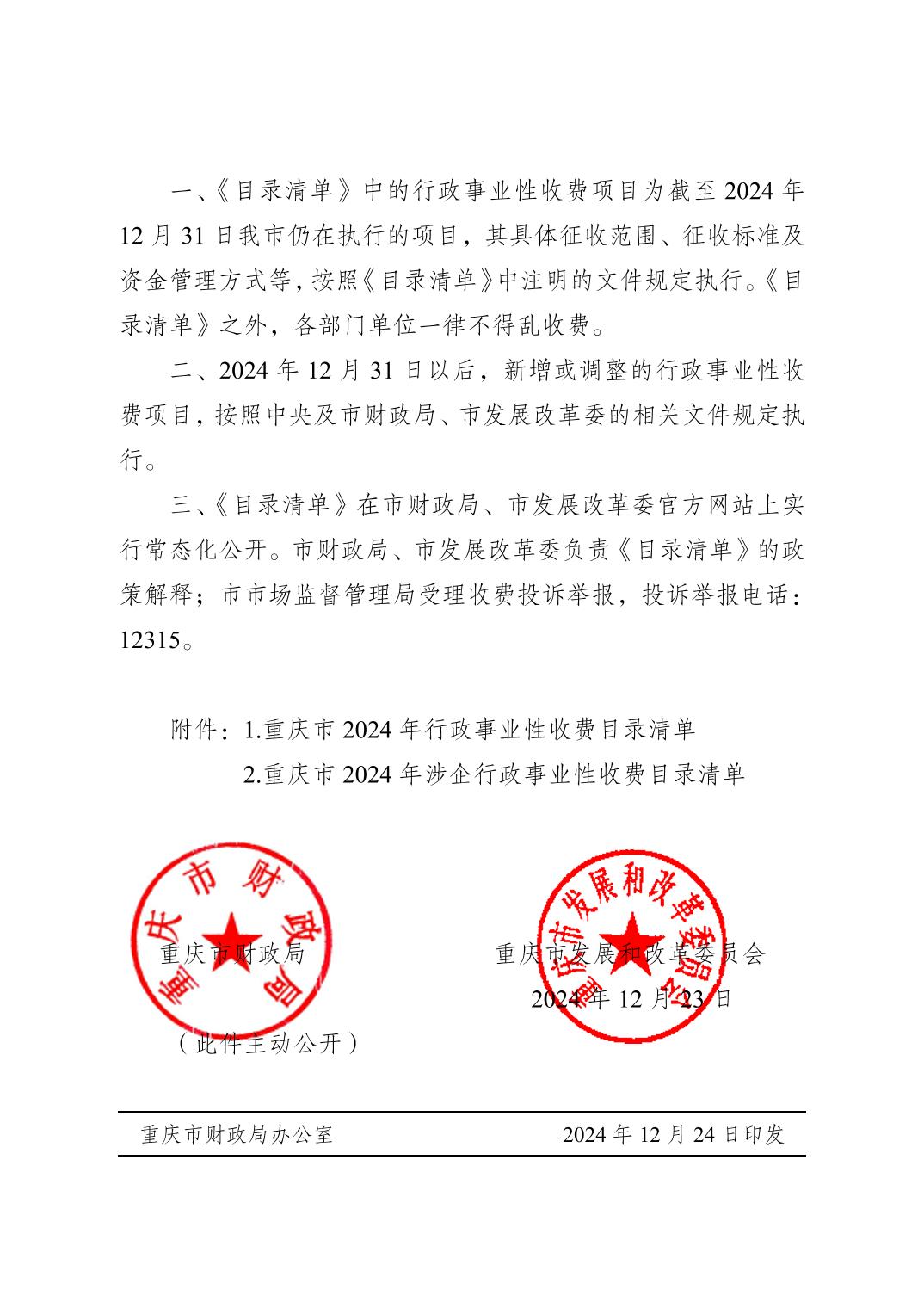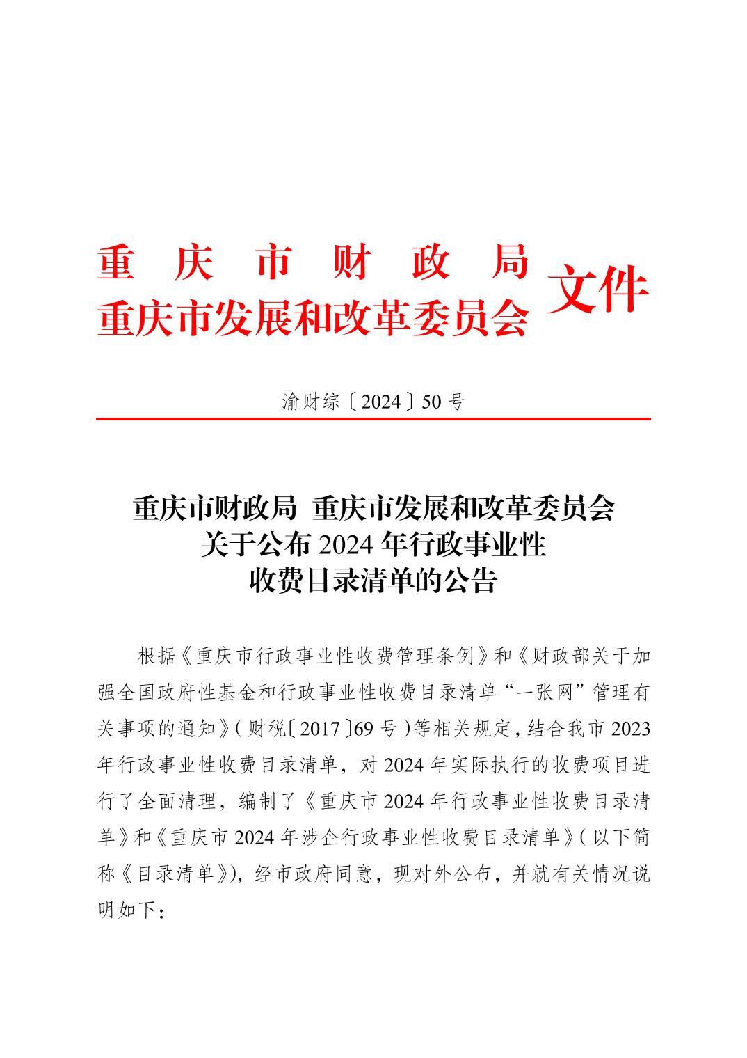 重庆市财政局 人妻视频 关于公布2024年行政事业性收费目录清单的公告