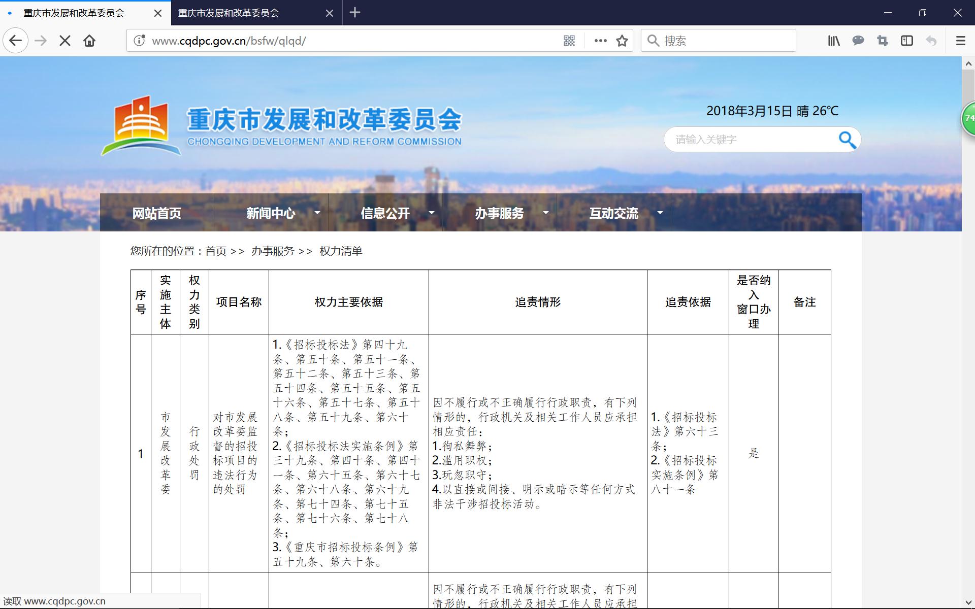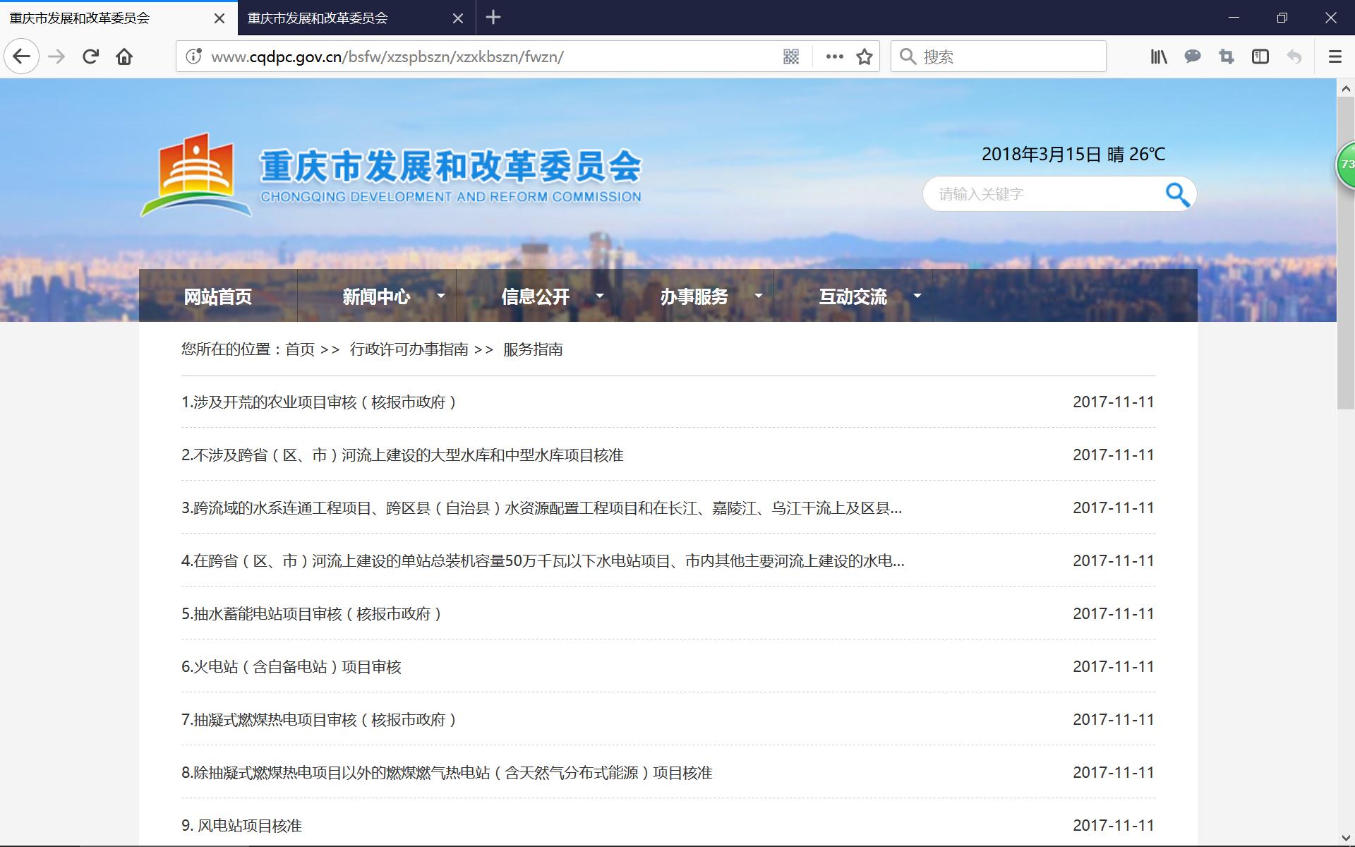 (五)推进“放管服”改革信息公开。一是着力抓好行政权力公开。按照“没有法律、法规和规章依据的权力事项不纳入,与‘放管服’改革不相符的事项不纳入,同一法律法规条款规定的内容不重复纳入”原则,编制我委行政许可事项清单,逐项明确各项行政许可事项的事项名称、设定依据、实施机关、实施对象、追责情形、追责依据等内容,完善形成重庆人妻视频 行政权力清单和责任清单,在委机关门户网站进行详细公布,接受社会监督,实现“清单之外无审批”。按照《重庆市政府核准的投资项目目录(2017年本)》,对权限范围内的行政许可事项清单开展清理规范。经合并整理后我委投资核准事项数量由原来的40项增加到48项,并经市政府审核通过后,在委机关门户网站上及时进行更新,确保行政权力信息全面、准确、透明。二是全面推进行许可事项标准化。针对48项行政许可事项逐一编制行政许可事项服务指南完整版和简版,规范行政许可事项的事项名称、适用范围、审批依据、申请条件、申请材料、办理流程、办结时限、结果送达、监督投诉渠道、责任处室、颁发证件形式等内容,同时明确每项行政许可事项具体经办人员的姓名、联系电话和办公地点。全部标准化后的许可事项办事指南均通过委机关门户网站、市网审平台等途径予以公开,为群众提供了有效的办事指引和及时、畅通的咨询服务。三是着力抓好全市社会公共信息资源共享交换平台建设。初步构建起“国家—市—区县”三级共享体系,建成全市统一的政务信息资源共享平台,于2017年9月率先与国家共享平台在线对接,并按要求向国家共享平台上传22个部门的政务信息资源目录,涉及资源项1003项,居全国前列。遴选两江新区、长寿区等8个区县(开发区)开展区县共享平台建设试点,目前8个试点区县(开发区)均已与市共享平台实现数据共享。编制形成信息资源目录及编码标准,按照国家《政务信息资源目录编制指南》,编制形成62个部门、2302类、3.45万项的信息资源目录。同时,结合重点领域应用,形成涉税信息、信用体系、社会保障、生态环保等13个主题信息资源目录。充分研究部门信息化建设和数据资源现状,分析900余项行业标准,编制形成我国首个以地理空间数据为基础,整合市级政务信息资源的大数据标准——《重庆市政务信息资源分类与编码标准》。市级部门数据实现在线共享,目前已有54个市级部门(单位)信息资源接入市共享平台,其中40个部门实现在线接入;市共享平台汇集政务信息资源达1110类,其中实时共享达706类;81个市级部门(单位)和区县通过市共享平台累计调用数据2400万次、2.1亿条,基本实现部门信息系统在线接入市共享平台并进行数据共享的目标。