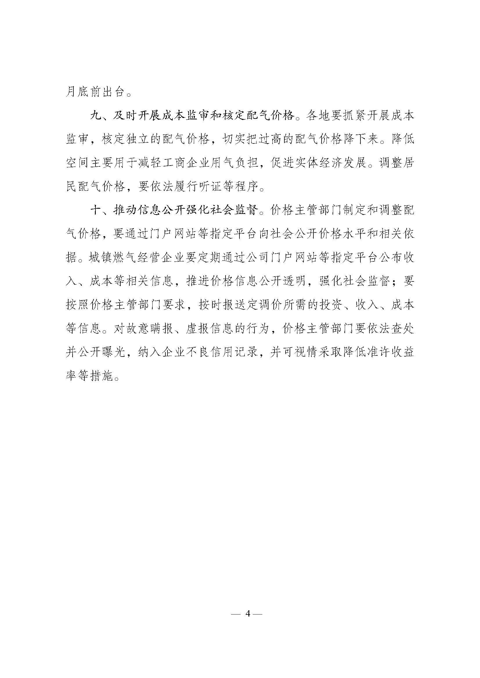四、加强信息公开强化社会监督,制定和调整配气价格,要通过门户网站等指定平台向社会公开价格水平和相关依据,调整居民配气价格要依法履行价格听证等程序。