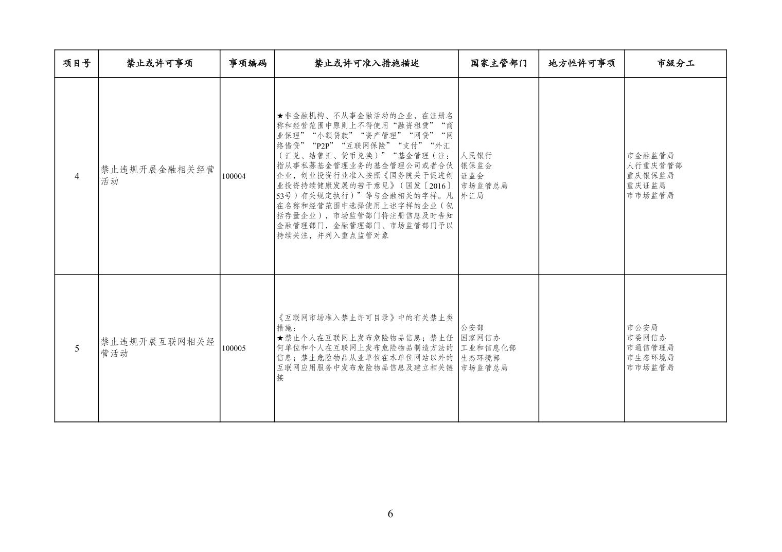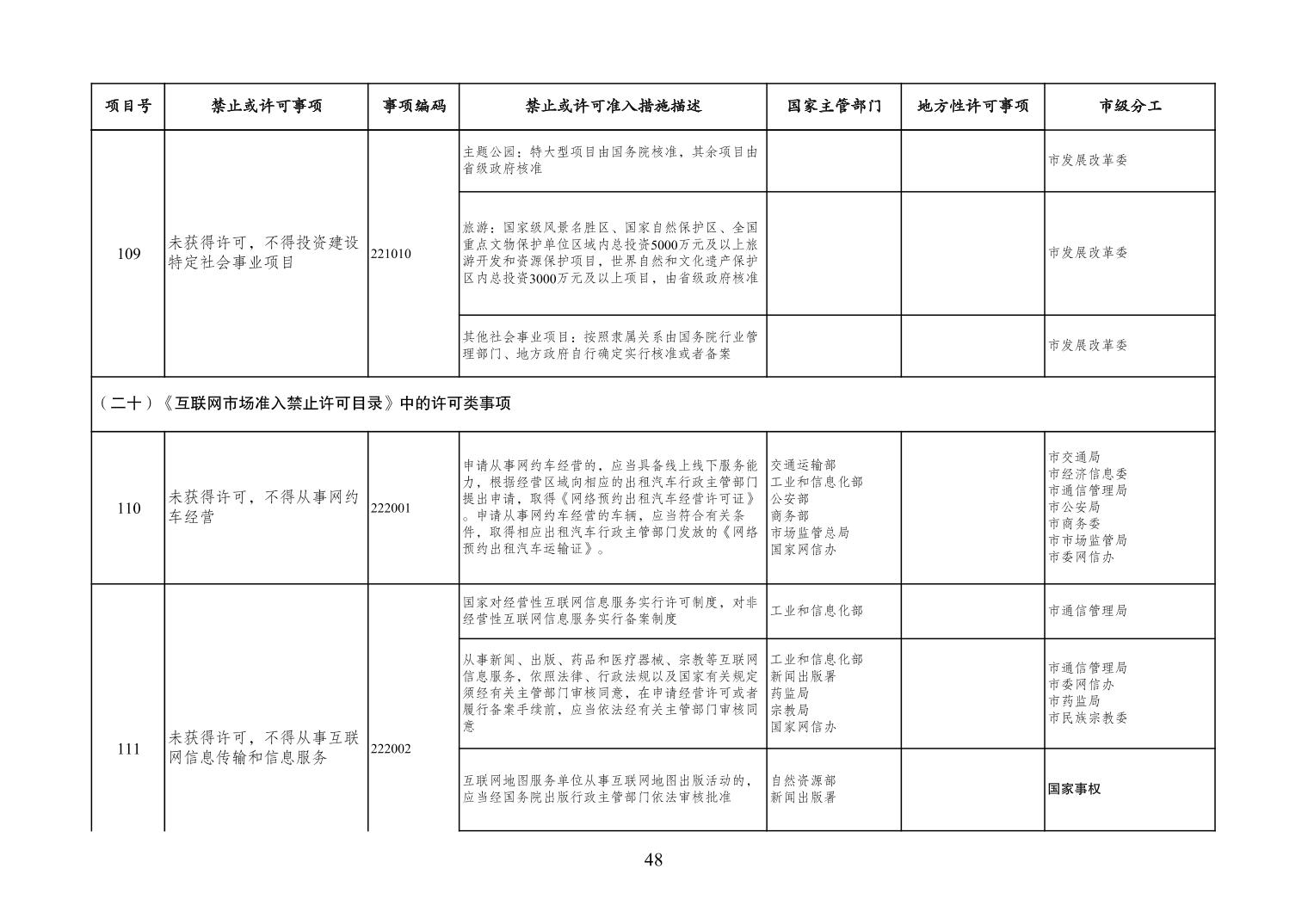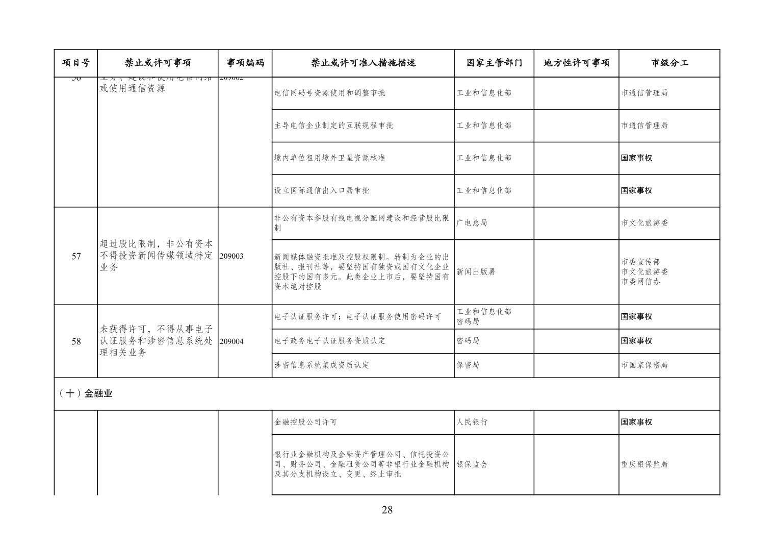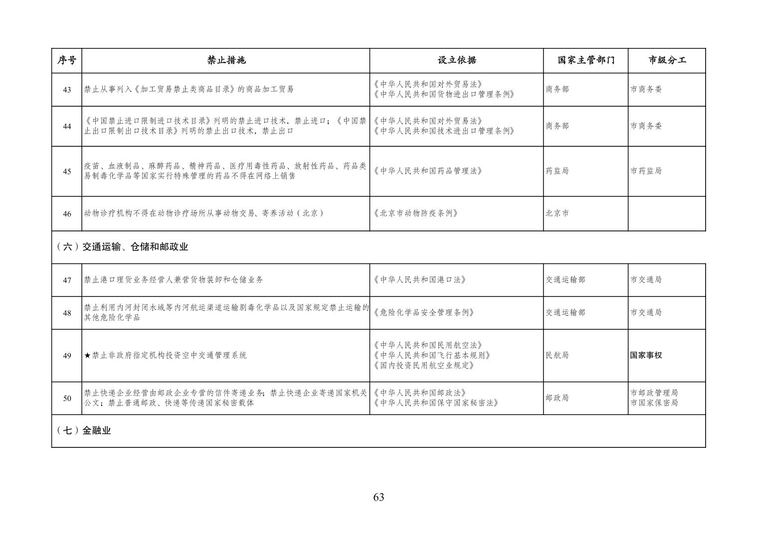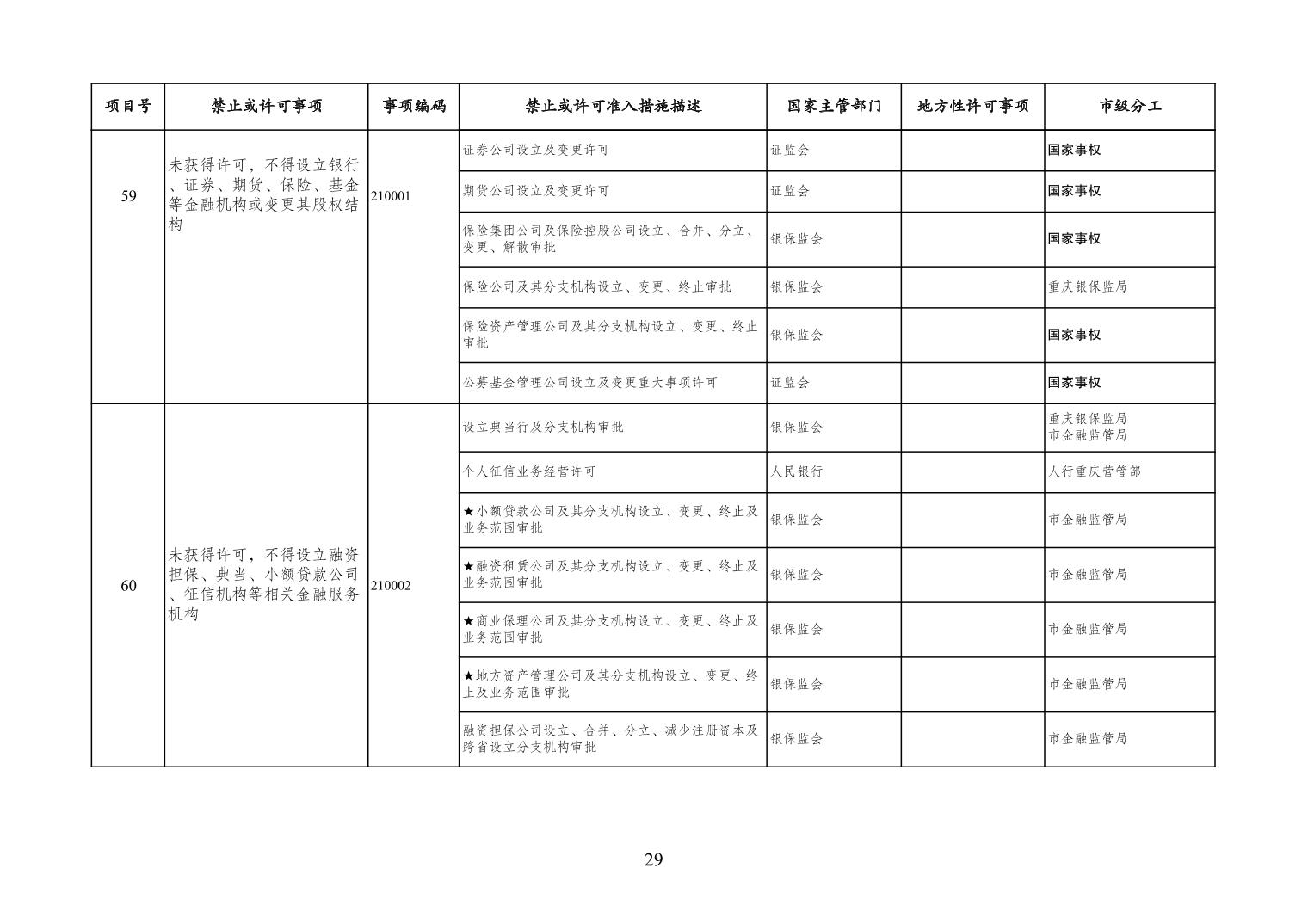一、严格落实“全国一张清单”管理要求。各区县、各部门不得自行发布具有市场准入性质的负面清单,坚决维护市场准入负面清单制度的统一性、严肃性和权威性,确保“一单尽列、单外无单”。严格落实“非禁即入”要求,对清单之外的行业、领域、业务等,各类市场主体皆可依法平等进入,不得违规另设市场准入行政审批和变相设定准入障碍。对清单所列事项,各区县、各部门要持续优化管理方式,严格规范审批行为,优化审批流程,提高审批效率,正确高效地履行职责。对属于国家事权的准入事项,要做好衔接落实和向市场主体咨询服务工作。