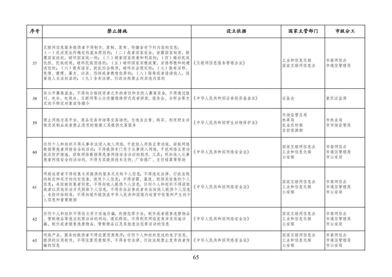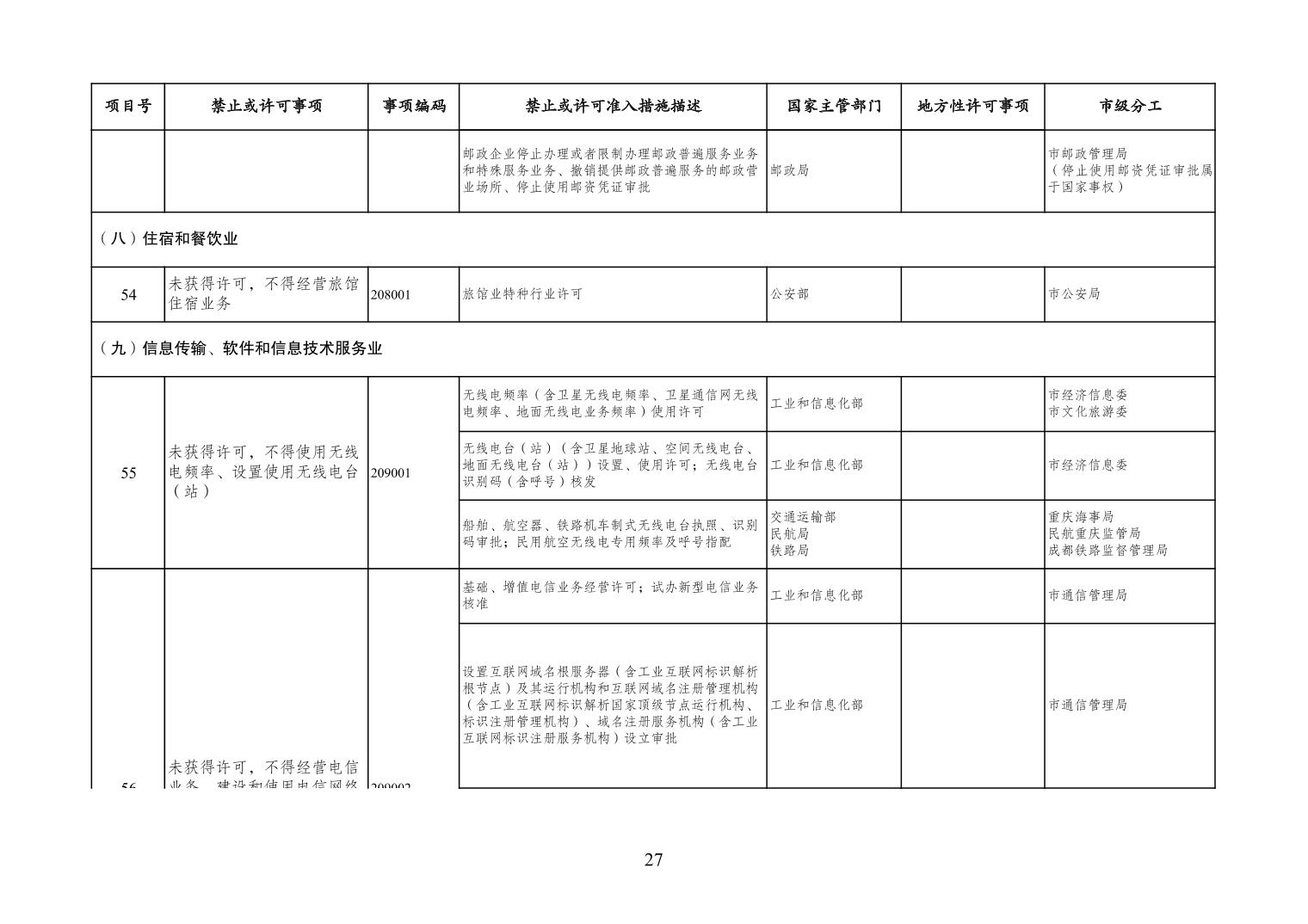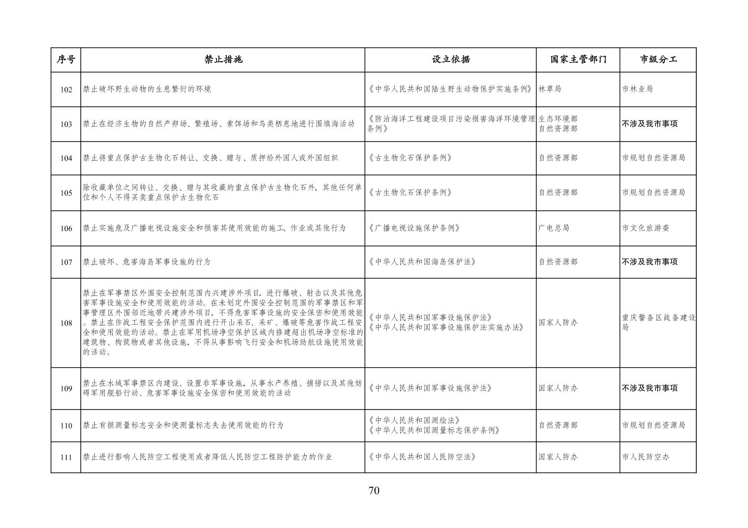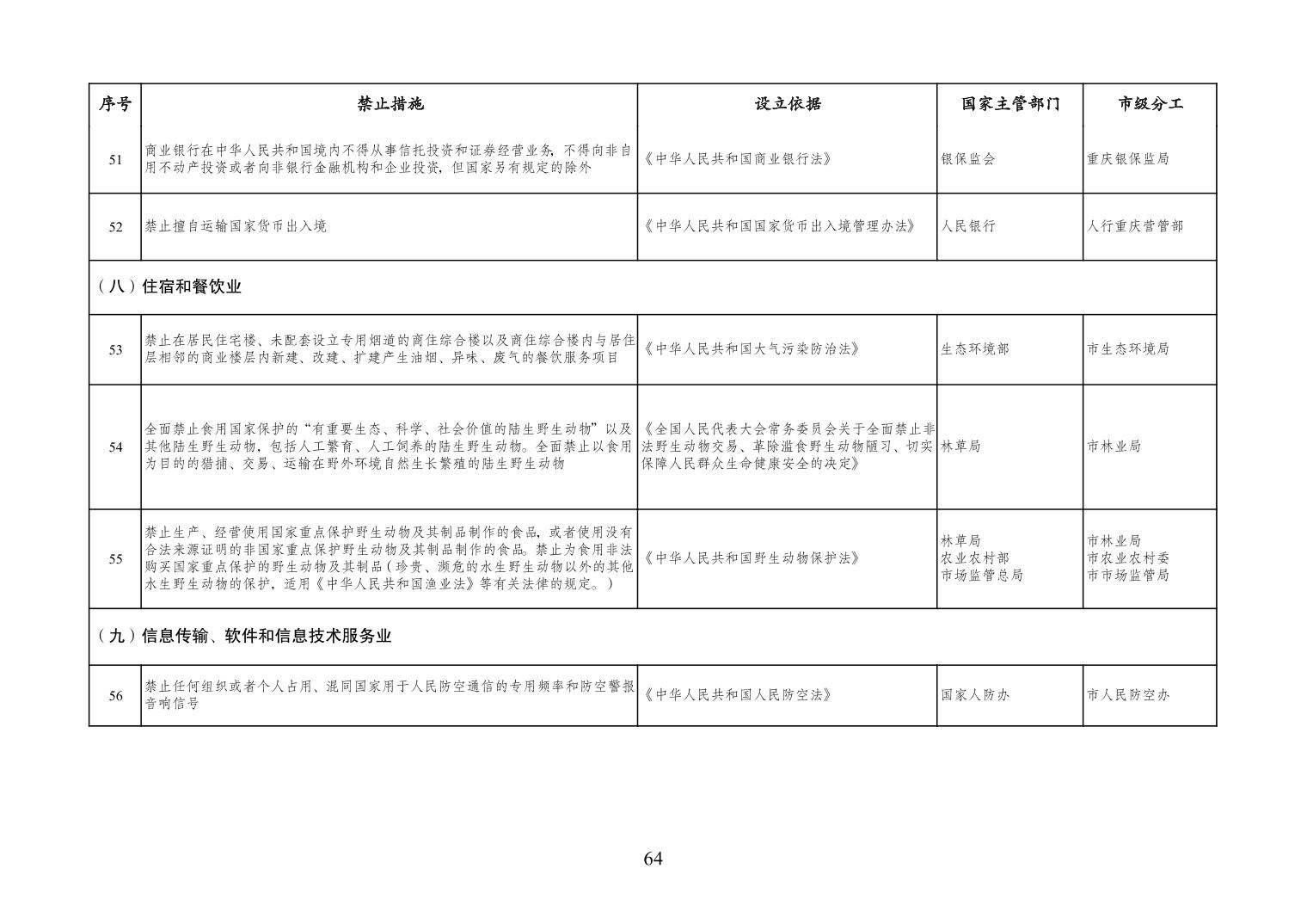 一、严格落实“全国一张清单”管理要求。各区县、各部门不得自行发布具有市场准入性质的负面清单,坚决维护市场准入负面清单制度的统一性、严肃性和权威性,确保“一单尽列、单外无单”。严格落实“非禁即入”要求,对清单之外的行业、领域、业务等,各类市场主体皆可依法平等进入,不得违规另设市场准入行政审批和变相设定准入障碍。对清单所列事项,各区县、各部门要持续优化管理方式,严格规范审批行为,优化审批流程,提高审批效率,正确高效地履行职责。对属于国家事权的准入事项,要做好衔接落实和向市场主体咨询服务工作。