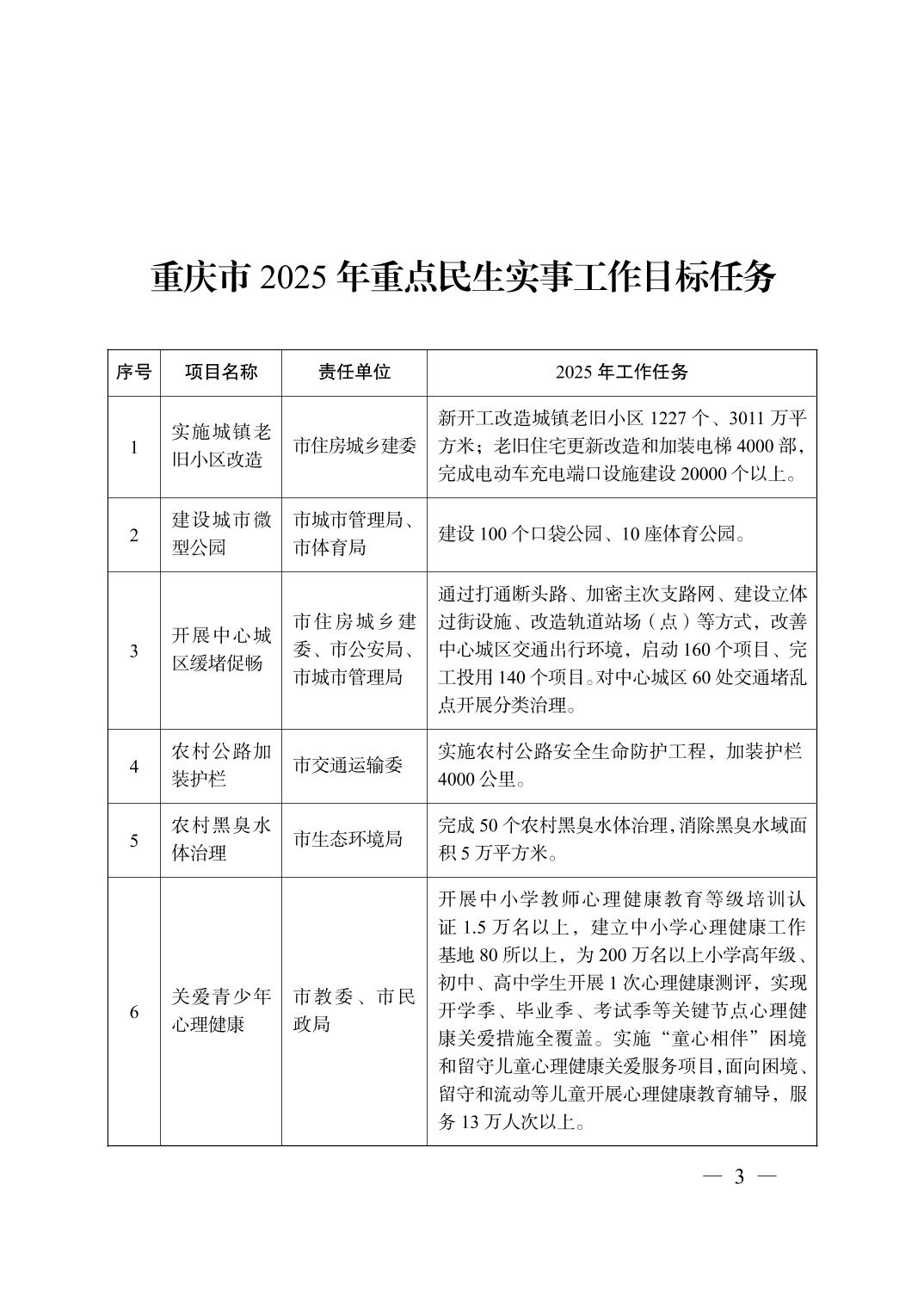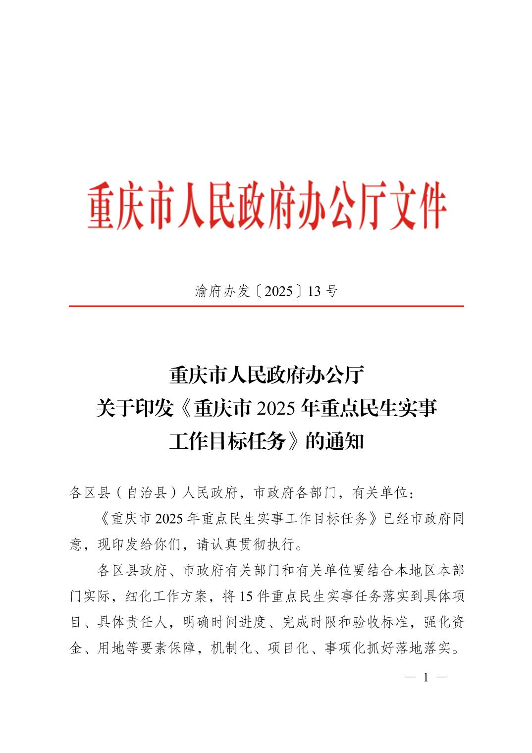 重庆市人民政府办公厅关于印发《重庆市2025年重点民生实事工作目标任务》的通知_其他文件_人妻视频