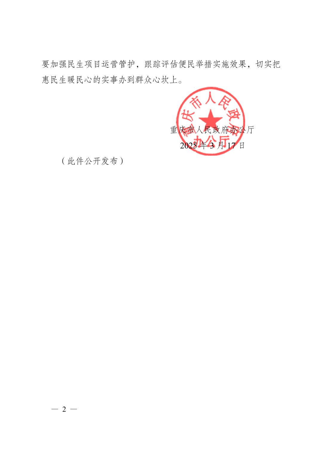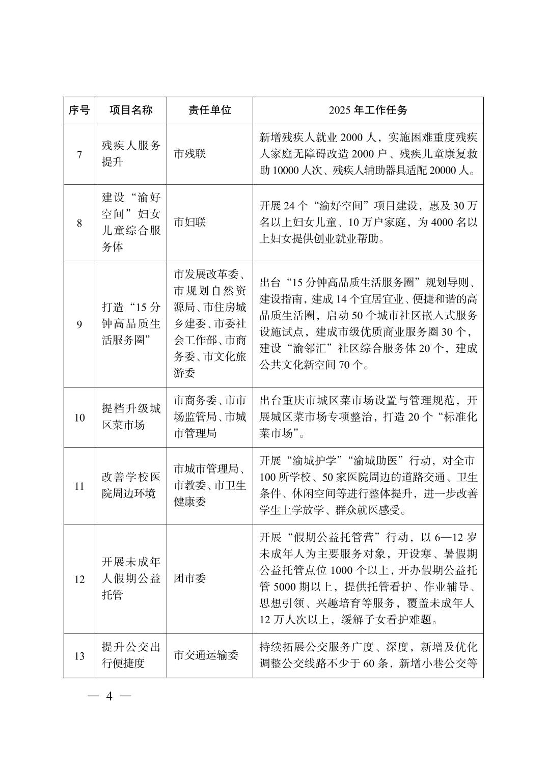 重庆市人民政府办公厅关于印发《重庆市2025年重点民生实事工作目标任务》的通知