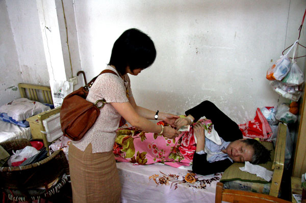 罗像华,我市发改委职工蔡义光遗孀,晚年生活中承受了一次又一次苦难的打击:1988年,其丈夫蔡义光因患癌症去世,一直无工作的她失去了老伴,生活陷入困难;2002年,其大儿子因肿瘤去世;随后,其大孙女又患脑部肿瘤需常年治疗;2006年,罗像华因高温中暑绊倒后瘫痪;2007年瘫痪四年的小儿子又离他而去。苦难于她如影随形。