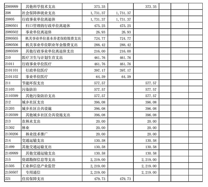 4.比较情况。本部门2018年度财政拨款支出主要用于以下几个方面:(1)一般公共服务支出18,911.12万元,占71.62%,较年初预算数增加7,652.58万元,增长67.97%,主要原因是预算执行过程中追加项目经费支出,主要有重大项目前期费、重大项目评估费、信用平台和固投平台建设等。(2)教育支出20.38万元,占0.08%,较年初预算数减少0.90万元,下降4.23%。(3)科学技术支出1,185.50万元,占4.49%,较年初预算数增加1,185.50万元,主要原因是预算执行过程中追加的高技术产业重大产业技术研发项目资金。(4)社会保障与就业支出1,723.99万元,占6.53%,较年初预算数增加294.28万元,增长20.58%,主要原因是预算执行过程中追加的离退休健康休养费和退休“中人”一次性补贴。(5)医疗卫生与计划生育支出461.76万元,占1.75%,与年初预算一致。(6)节能环保支出577.57万元,占2.19%,较年初预算数增加577.57万元,主要原因是预算执行过程中追加的低碳发展专项资金支出。(7)城乡社区支出396.08万元,占1.50%,较年初预算数增加396.08万元,主要原因是预算执行过程中追加的亚行贷款重庆市统筹城乡基础设施建设本息费。(8)农林水支出20.00万元,占0.08%,较年初预算数增加20.00万元,主要原因是预算执行过程中追加的生态文明建设专项支出。(9)资源勘探信息等支出2,219.00万元,占8.40%,较年初预算数增加2,219.00万元,主要原因是预算执行过程中追加的应急通讯项目中央基建投资支出。(10)住房保障支出423.16万元,占1.60%,较年初预算数减少7.98万元,下降1.85%,主要原因是人员增减变动造成。(11)其他支出467.00万元,占1.77%,较年初预算数增加467.00万元,主要原因是预算执行过程中追加项目支出经费,主要有PPP项目前期工作中央基建和西部大开发重点项目前期经费。