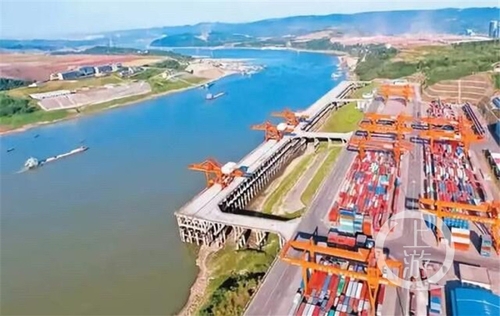 ▲中国与新加坡在重庆果园港片区打造的中新多式联运基地,为“陆海新通道”提供了多式联运产业载体